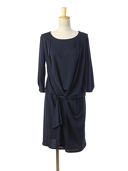 ネイビーのワンピースです。または、細身のパンツを合わせて着てもよさそうな、アセテートの薄手の素材です。ワンピースと言えば、ノースリーブや半そでのものが多く目につくなか、長そでブラウスなワンピースというのは、珍しいなと思いました。ドレープが奇麗にでるように、内側にゴムでウエストのあたりが固定できるような工夫もあったりして、とても着やすかったです。首もスッキリと見える絶妙な襟のデザインでした。あとは、似合うというところもOKです。これで内容の方にもようやく集中できそうです。