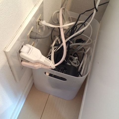 小箱の中にソケットを入れて、ランケーブルや充電のプラグを収納していると言うのです。